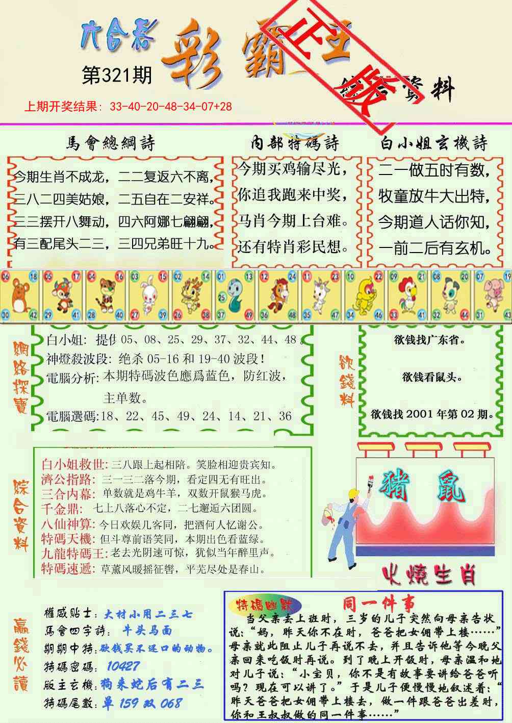 | 320期 33-40-20-48-34-07 T28 34=猪狗鸡猴羊马蛇? |